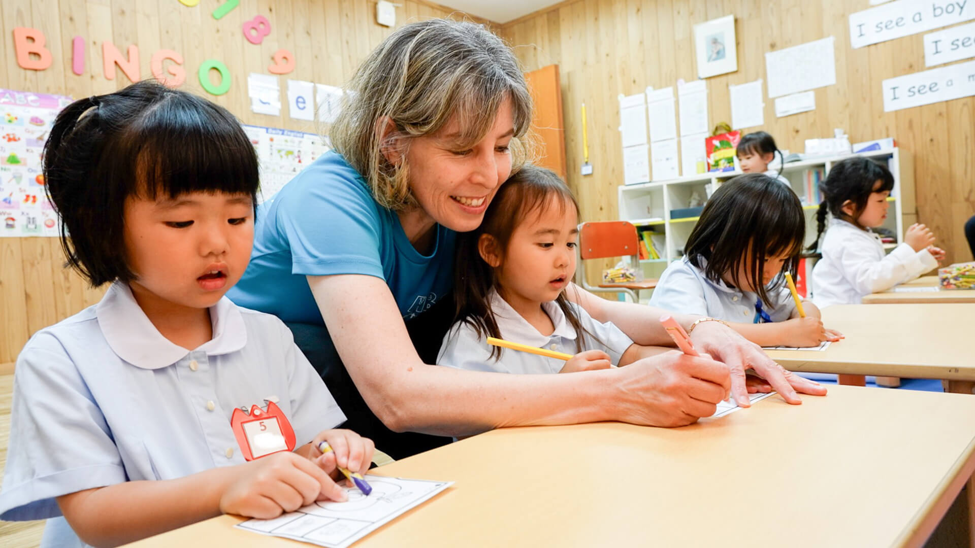アート 英語 DE アート身近な道具を使い、豊かな表現力と感受性を育てます。 自分の思いを形にする喜びや、作品を通じてお友だちと交流する楽しさも体験します。 担当の先生は、英語指導で子どもたちも大好きなカオリ先生が担当。英語も使いながら、学んでいきます。